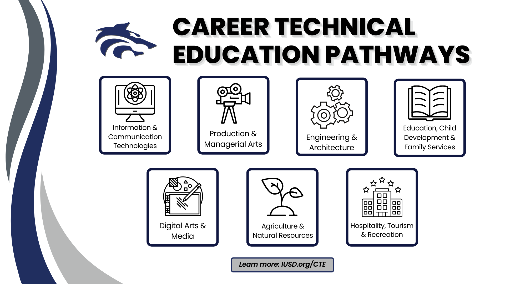 - Hospitality, Tourism & Recreation: Prepares students for careers in culinary, hospitality, and tourism through academics and training in customer service, event planning, and business management.